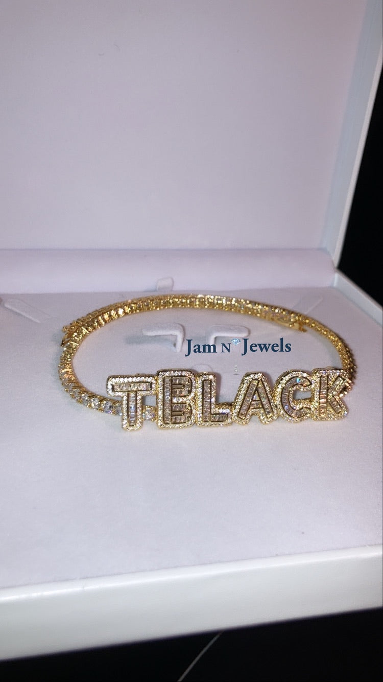 CZ Tennis Strapped Name Necklace
